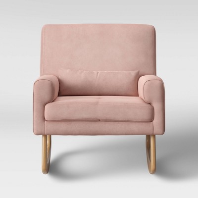The well-balanced Sleepytime Rocker is lightly padded and finely upholstered with a fitted back using ultra-soft velvet.